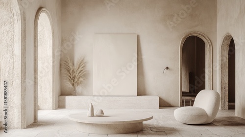 Fototapeta - Beige interior design mockup with minimalist furniture.