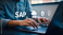 >Naklejka na meble>A person uses a laptop, with icons for sap, cloud computing, ai, and security displayed, representing modern business technology solutions