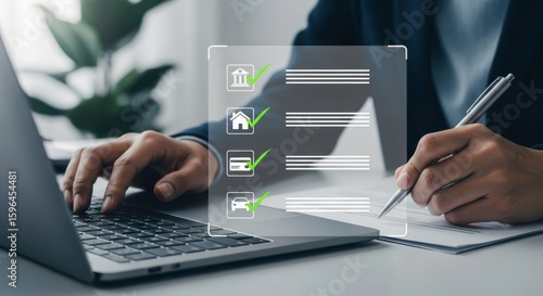 Fototapeta - Online banking loan application approval process checklist finance mortgage credit card auto loan digital