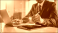 Fototapeta - Businessman completes digital checklist on tablet with laptop, modern office setting