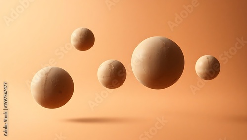 Fototapeta - Beige spheres floating on orange background minimal art design