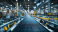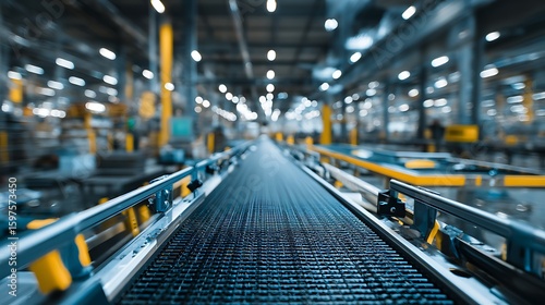 Energy-efficient manufacturing technology. Industrial conveyor belt in a modern warehouse setting.' .
