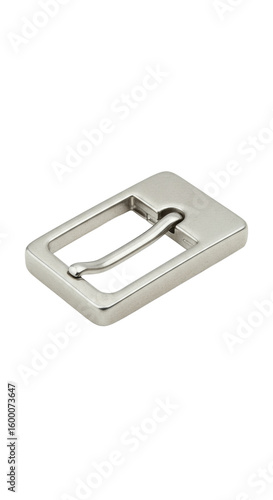 Fototapeta - Pristine silver-colored geometric center bar buckle, isolated on a pure stark white background in a high-key studio, ultra photorealistic with sharp focus. Concept of industrial elegance