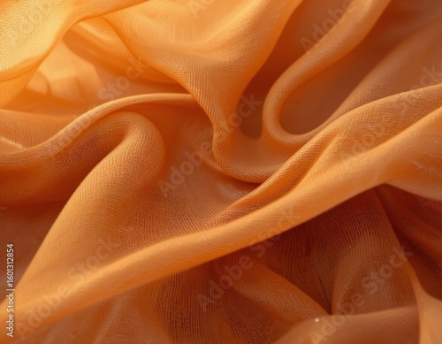 Close up of flowing sheer orange fabric with soft folds and texture