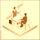 ビジネスミーティング中の交渉シーンのアイソメイラスト