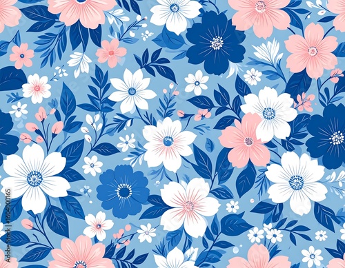 Fototapeta - Floral pattern with pastel colors and detailed flowers