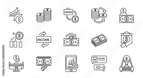 Business finance and money management line icon set. Concepts of income, savings, investment, and profit growth.
