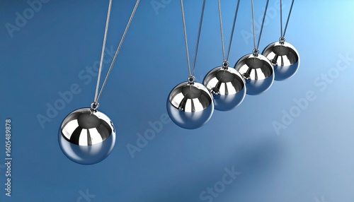 >Naklejka na meble>Newton's cradle illustrating the laws of motion and energy conservation, symbolizing cause and effect, decision-making or ripple effect in business or science