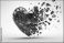 A shattered red heart on a light gray background