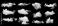 set of white cloud isolated on black background
