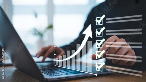 Achieving goals with strategic planning a digital checklist and data driven insights on a laptop screen illuminated by
