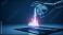 >Naklejka na meble>A robotic hand interacting with a glowing holographic bar chart emerging from a digital tablet, symbolizing AI-driven data analysis, business intelligence, and futuristic technology.