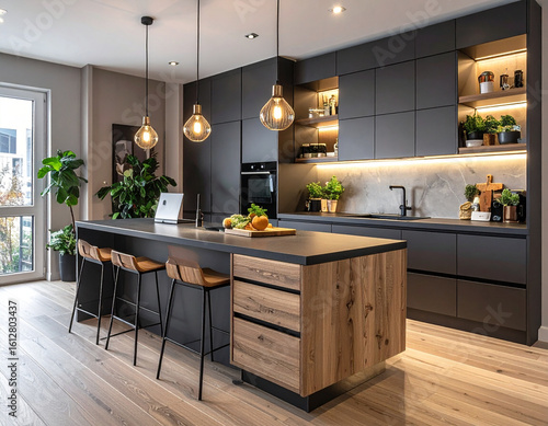 >Naklejka na meble>Transform your culinary space modern wooden black kitchen contemporary home design inspiration minimalist aesthetic interior design concept