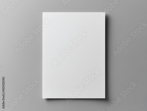 Fototapeta - A blank white vertical book cover mockup with a soft shadow isolated on a solid gray background.