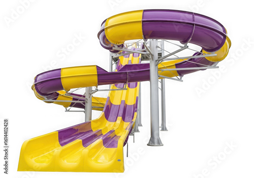 A vibrant yellow and purple water slide at a waterpark, promising summer fun isolated on transparent background