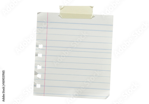 Fototapeta - A lined sheet of paper is taped to a surface, ready for notes or messages isolated on transparent background