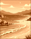 Landscape by the ocean. Oil paint. Pattern for printing on wall decorations