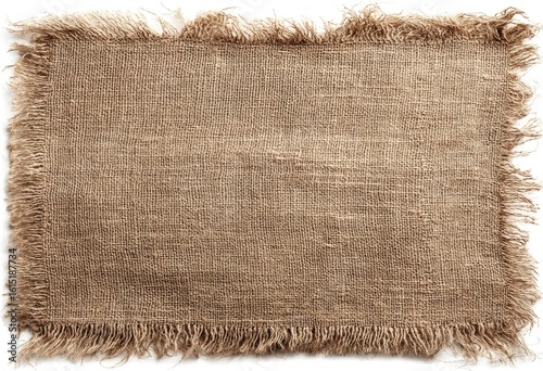 Fototapeta - Rustic, tan burlap rectangle with frayed edges