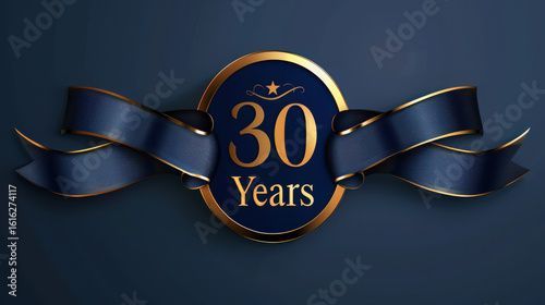 Fototapeta - A celebratory emblem with ribbons marking thirty years of service or achievement elegantly displayed