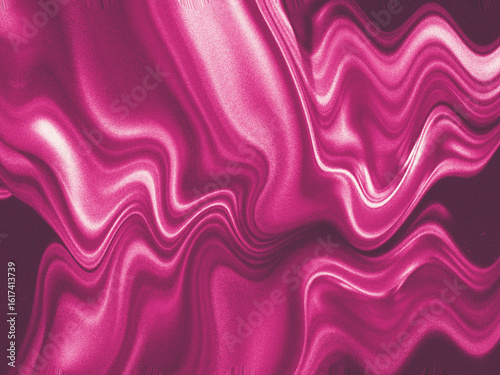 Fototapeta - Vibrant pink liquid metal waves in a fluid motion. An abstract digital background with a shimmering, grainy texture and distorted light effect.