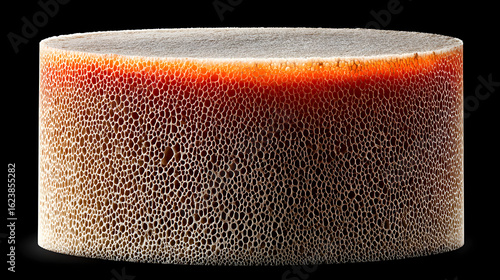 Fototapeta - Close up of porous ceramic cylinder with orange hue showcasing complex structure and advanced material for industrial applications