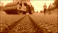 >Naklejka na meble>Traffic of cars and a truck on the empty asphalt road under the yellow sky. Engineers inspect asphalt quality after machinery works. Construction site.
