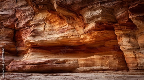 Fototapeta - Close up of layered sandstone rock formations with warm orange and red hues