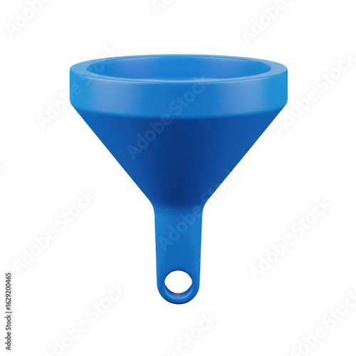 Fototapeta - 3d icon of a blue plastic funnel with a hanging loop, isolated on transparent background