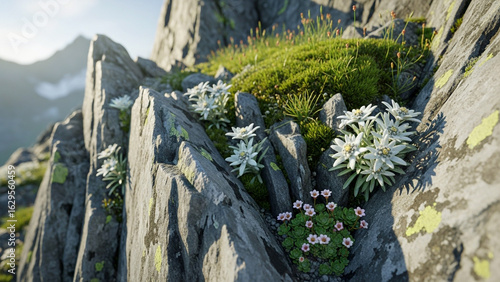 Fototapeta - Edelweiss Alpine Flower – Rare Leontopodium Alpinum in Natural Mountain Habitat