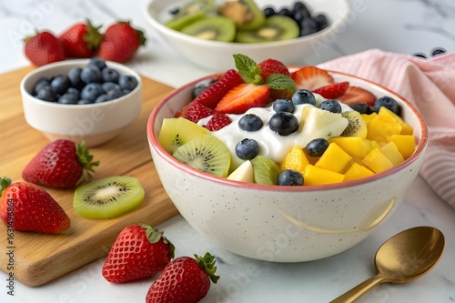 Fototapeta - Fruits cream chat with berries