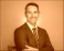 Fototapeta - Portrait of white male professional in a blue suit and red tie.