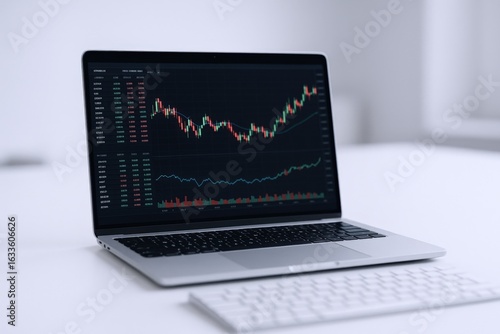 Fototapeta - Laptop Displaying Stock Market Chart Analysis for Financial Trading and Investment Insights in Business