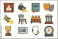 Colorful theater icon set featuring stage, lighting, script, masks, and more