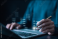 >Naklejka na meble>Digital checklist and task management concept with a man using a laptop and pen to interact with a virtual interface for productivity, planning, and project organization. checklist document