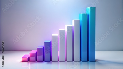 Fototapeta - Photo of a colorful bar graph showing upward trend and business growth, isolated on white background