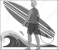 Fototapeta - Male surfer with red surfboard standing near blue ocean wave in summer vector illustration