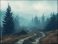Fototapeta - Brumous elevation countryside with mystical fir-tree timberland in haze