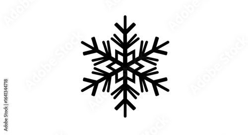 Symmetrical 6pointed black snowflake with geometric center branchlike arms on a white background