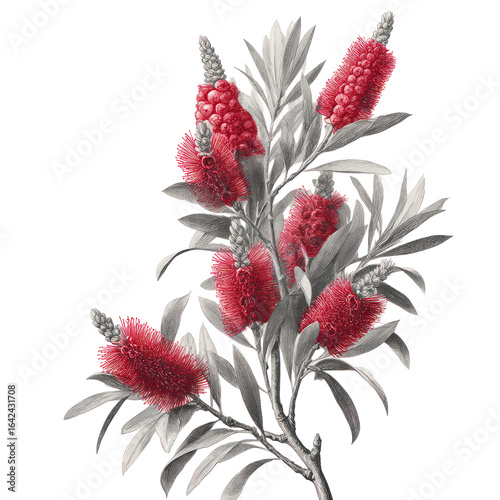 Fototapeta - Detailed sketch of an ornamental bottlebrush tree with flowers transparent background