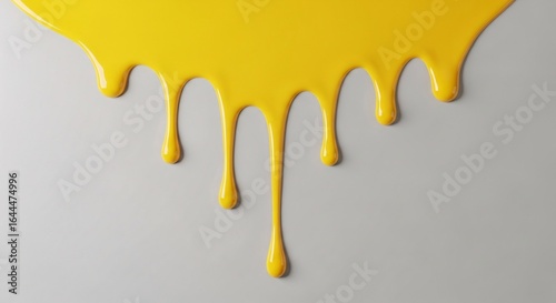 Fototapeta - Vibrant yellow liquid drips beautifully down a clean grey background, creating a modern abstract art piece.