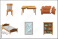 Fototapeta - Damaged furniture and repair icons, broken chair cracked table shattered mirror bed bookshelf, restoration and maintenance vector