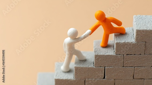 Clay figures teamwork helping hand assistance support collaboration success leadership steps climb concept