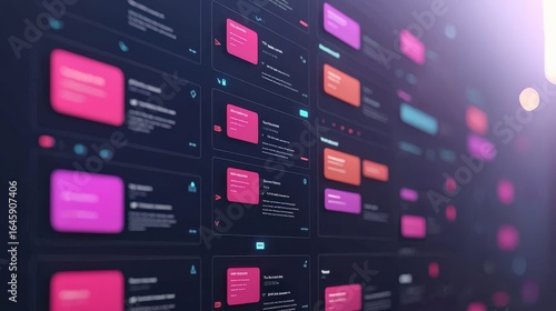 Fototapeta - Productivity Tools workflow remote concept. Digital interface with colorful message notifications displayed.