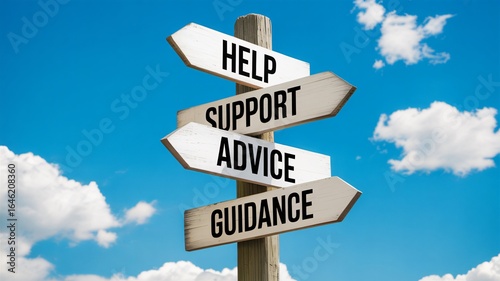 Fototapeta - Seeking direction get help support advice guidance now concept