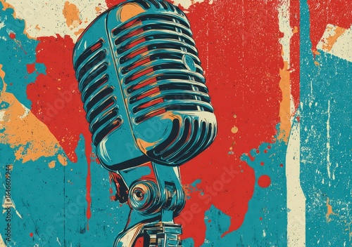 Fototapeta - Retro microphone, vibrant colors, artistic background
