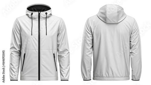 Fototapeta - Raincoat Mockup, Light Grey Hooded Jacket with Zipper and Pockets on Transparent Background