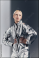 Futuristic fashion in a modern studio showcases a young blonde woman with striking style