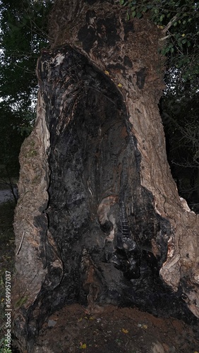 Fototapeta - Olbrzymi pień drzewa, pusty i wypalony w środku