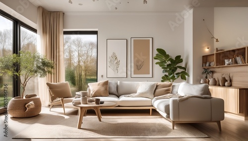 Fototapeta - neutral tones create a calming living room ambiance with modern decor