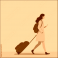 Fototapeta - Young woman walking with suitcase and backpack while using phone